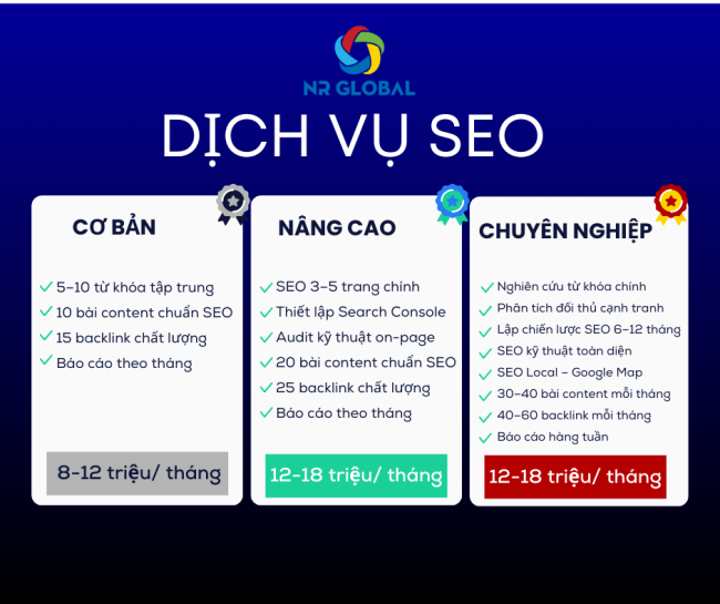 NR Global gửi báo giá minh bạch theo từng gói SEO phù hợp với nhu cầu.