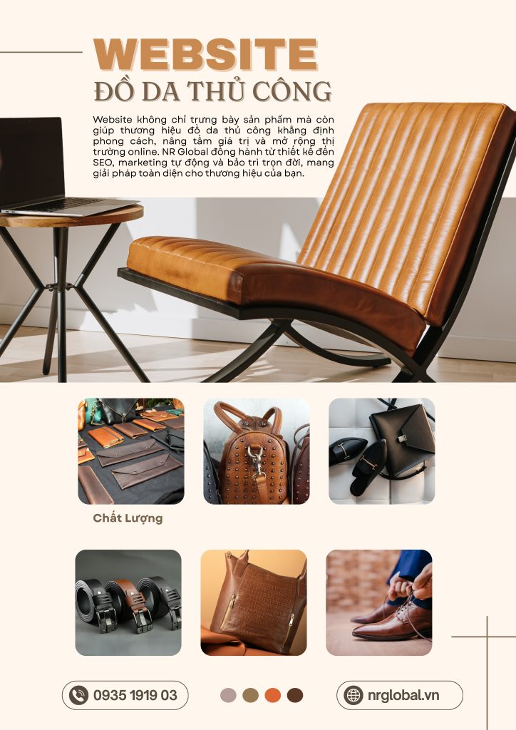 NR Global đồng hành cùng bạn từ ý tưởng đến triển khai, tối ưu SEO, tích hợp marketing và đảm bảo website vận hành ổn định. Đây là giải pháp toàn diện giúp thương hiệu đồ da thủ công phát triển bền vững và khẳng định chất riêng trên thị trường online toàn quốc.