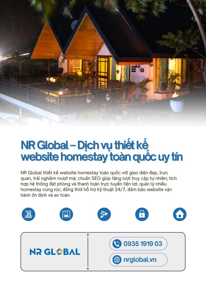Đây chính là lý do dịch vụ thiết kế website homestay toàn quốc của NR Global trở thành giải pháp tối ưu cho các chủ homestay muốn mở rộng thị trường, quản lý dễ dàng và thu hút khách hàng mới.